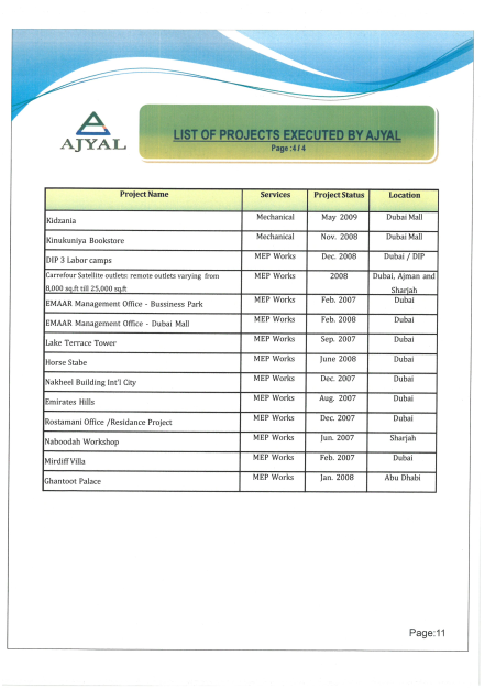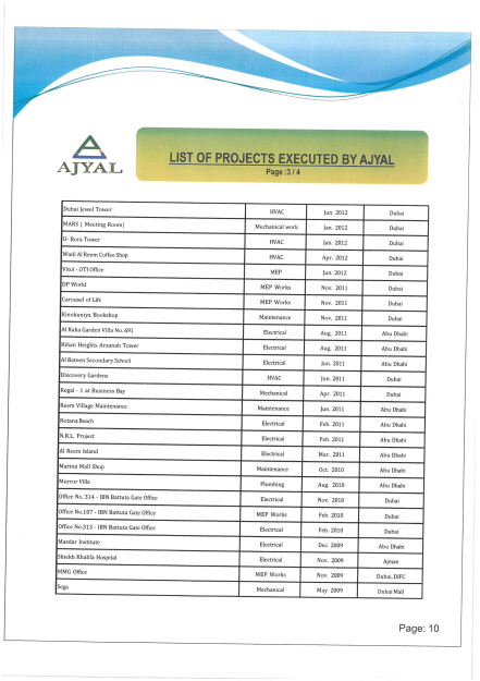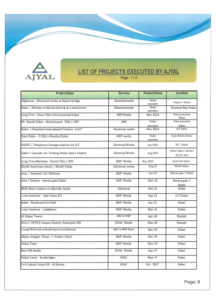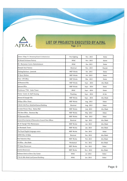 We have enclosed for your reference for the our list of projects that are under execution or executed in UAE by Ajyal .